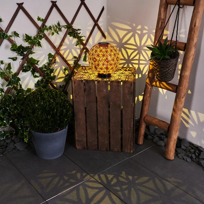 Die Leuchte verfügt über ein Solarpanel und einen eingebauten Akku mit einer Akkulaufzeit von ca. 6-8 Stunden.