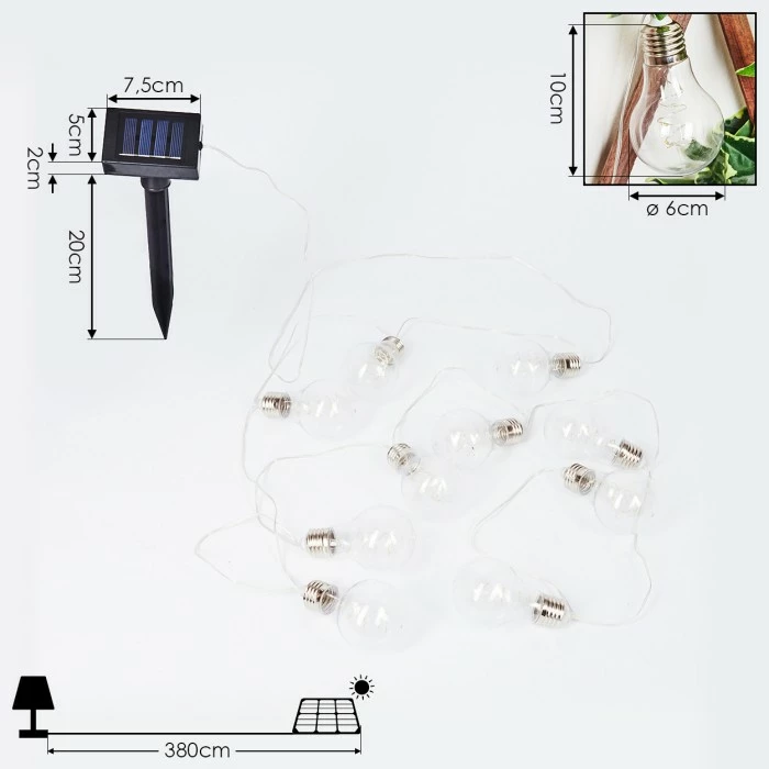 Besonderheiten: Diese Lichterkette verfügt über ein Solarpanel und einen eingebauten Akku mit einer Akkulaufzeit von ca. 6-8 Stunden.
