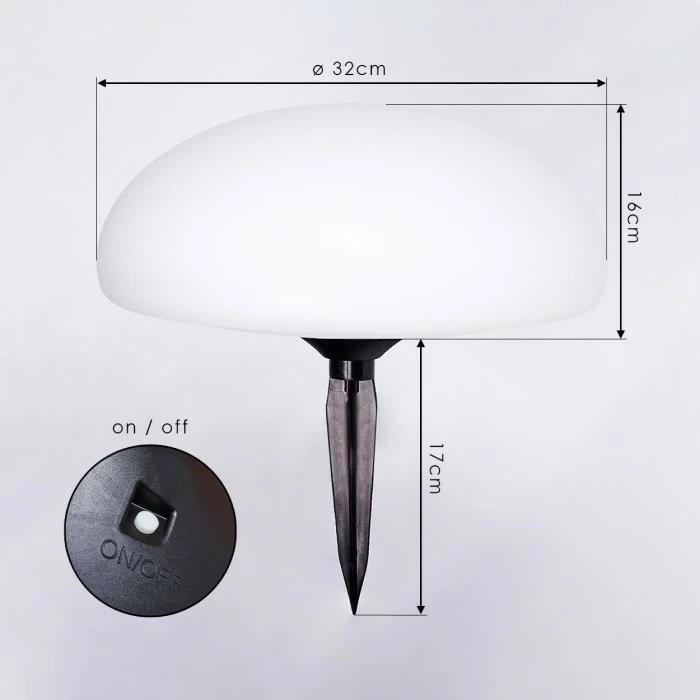 Die Leuchte verfügt über ein Solarpanel und einen eingebauten Akku mit einer Akkulaufzeit von ca. 6-8 Stunden.