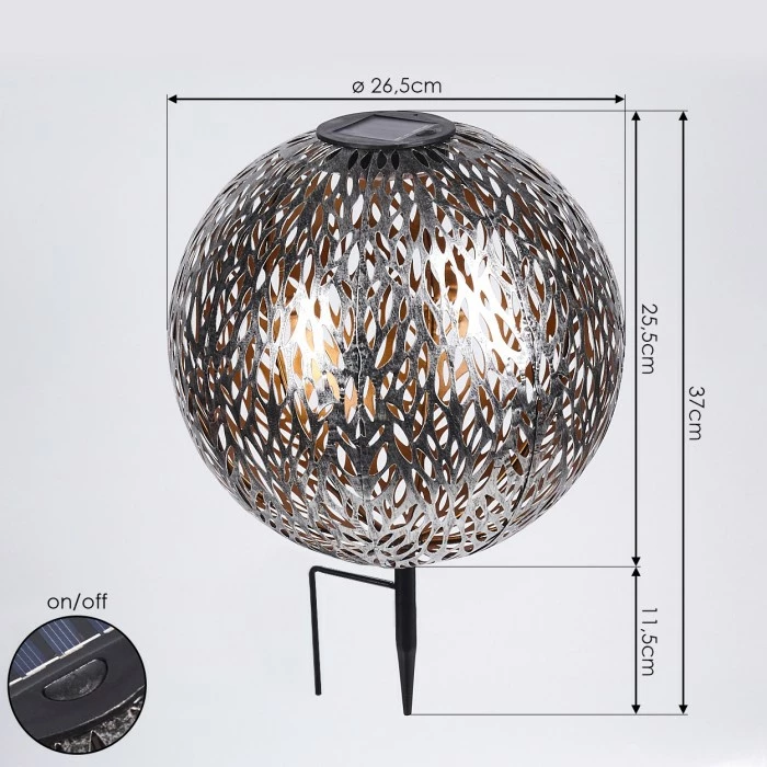 Die Leuchte verfügt über ein Solarpanel und einen eingebauten Akku mit einer Akkulaufzeit von ca. 6-8 Stunden.